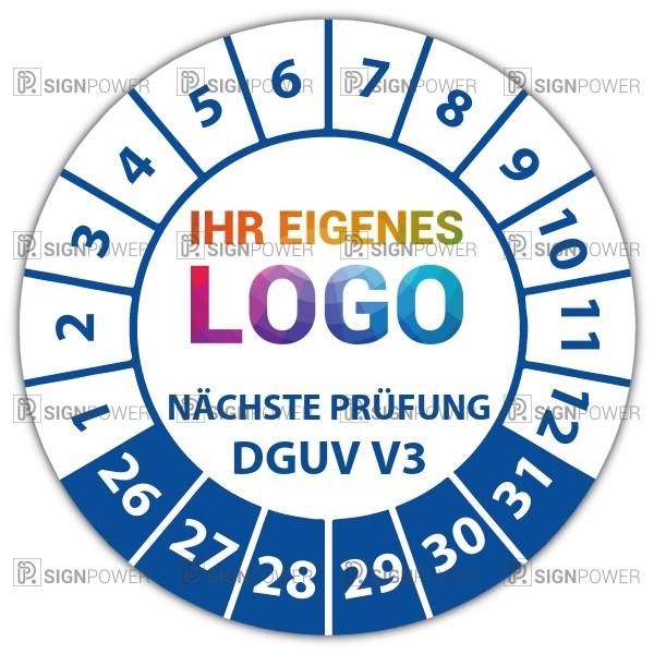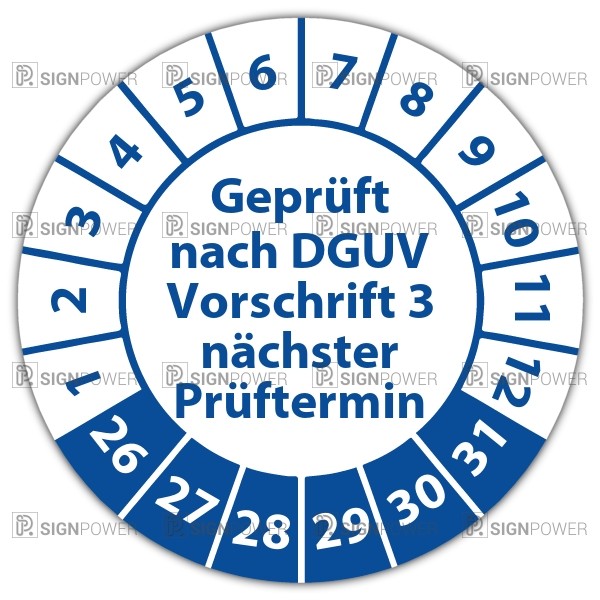 • Prüfplakette "Geprüft nach DGUV Vorschrift 3 nächster Prüftermin" Prüfplakette "Geprüft nach DGUV Vorschrift 3 nächster Prüftermin" logo