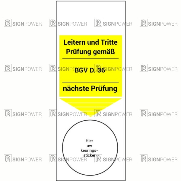 • Leiter und tritte Prüfung gemäß BGV-36 Grundplakette mit Logo