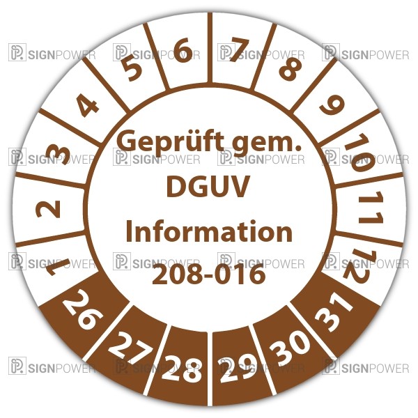 • Prüfplakette Dokumentenfolie "Geprüft gem. DGUV Information 208-016" Prüfplakette Dokumentenfolie "Geprüft gem. DGUV Information 208-016" logo