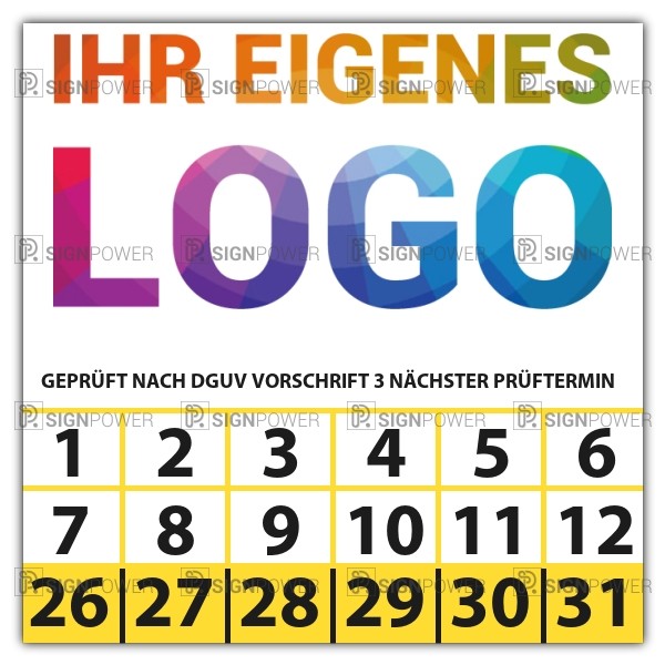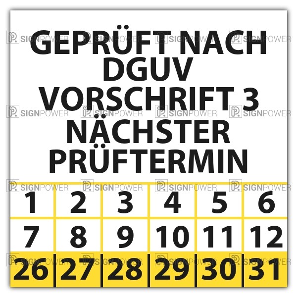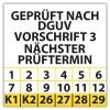 • Prüfplakette Dokumentenfolie "Geprüft nach DGUV Vorschrift 3 nächster Prüftermin" Prüfplakette Dokumentenfolie "Geprüft nach DGUV Vorschrift 3 nächster Prüftermin" logo