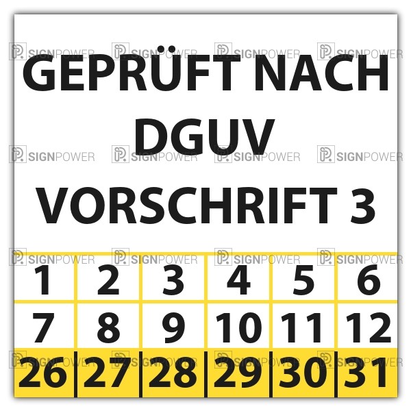 Prüfplakette Dokumentenfolie "Geprüft nach DGUV Vorschrift 3" Quadrat