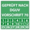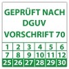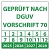 Prüfplakette Dokumentenfolie "Geprüft nach DGUV Vorschrift 70" Quadrat