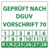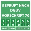 • Prüfplakette Dokumentenfolie "Geprüft nach DGUV Vorschrift 70" Prüfplakette Dokumentenfolie "Geprüft nach DGUV Vorschrift 70" logo