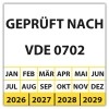 • Prüfplakette Dokumentenfolie "Geprüft nach VDE 0702" Prüfplakette Dokumentenfolie "Geprüft nach VDE 0702" logo