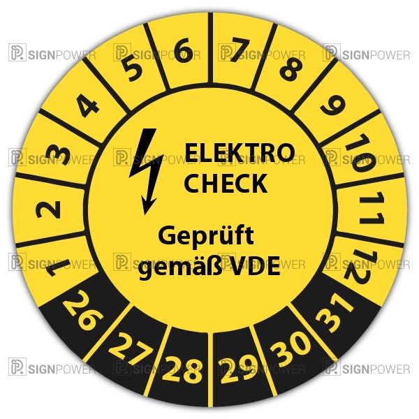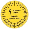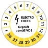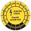Prüfplakette für die Elektrotechnik mit der VDE-Zertifizierung als Standard. Wird auf handlichen Rollen geliefert und ist in verschiedenen Formen und Größen erhältlich. auch mit kostenlosem Logo-Aufdruck möglich