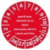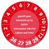Prüfplakette "geprüft gem. BetrSichV §3 (3) DGUV Information 208-016 Leitern und Tritte" auf Rolle
