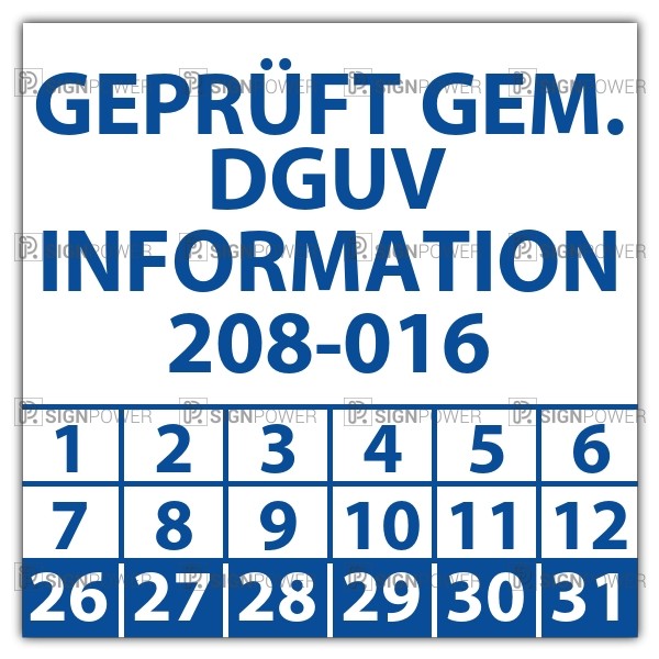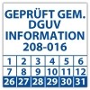 Prüfplakette "Geprüft gem. DGUV Information 208-016" Quadrat