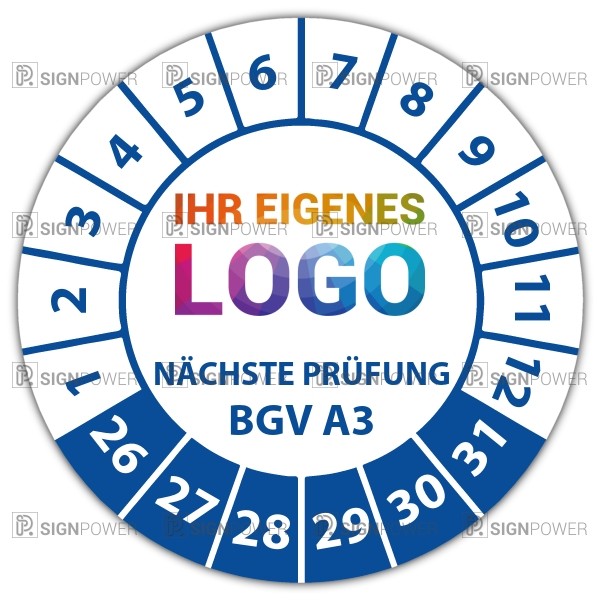 • Prüfplakette "Geprüft nach BGV A3 Nächster Prüftermin" Prüfplakette "Geprüft nach BGV A3 Nächster Prüftermin" logo