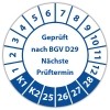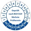 Prüfplakette "Geprüft nach BGV D29 Nächste Prüftermin" auf Rolle