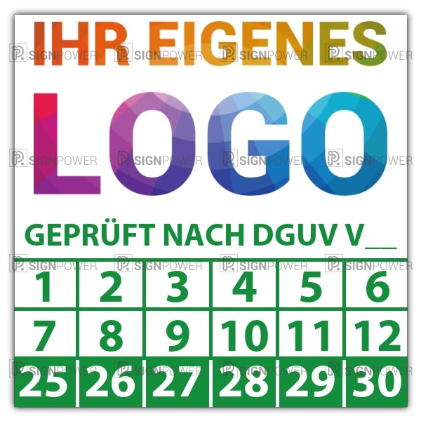 • Prüfplakette Geprüft nach DGUV (eigene eingabe) Prüfplakette Geprüft nach DGUV (eigene eingabe) logo