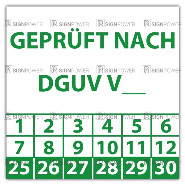 Prüfplakette Geprüft nach DGUV (eigene eingabe) Quadrat