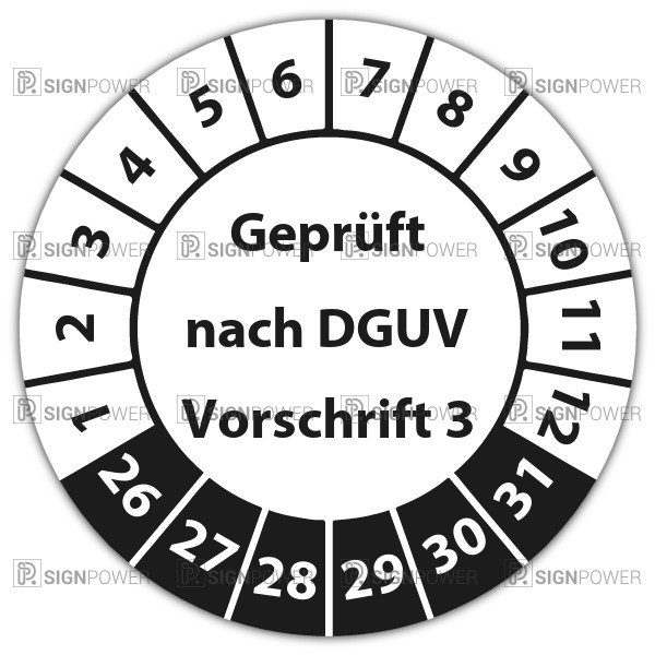 • Prüfplakette "Geprüft nach DGUV Vorschrift 3" Prüfplakette "Geprüft nach DGUV Vorschrift 3" logo