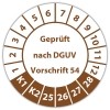 Prüfplakette "Geprüft nach DGUV Vorschrift 54" auf Bogen