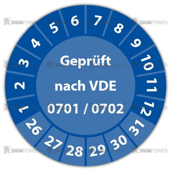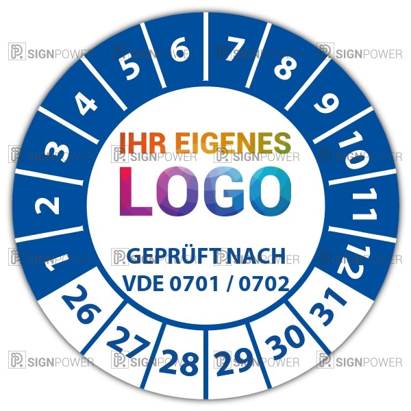 Prüfplakette für die Elektrotechnik mit der VDE-Zertifizierung als Standard. Wird auf handlichen Rollen geliefert und ist in verschiedenen Formen und Größen erhältlich. auch mit kostenlosem Logo-Aufdruck möglich