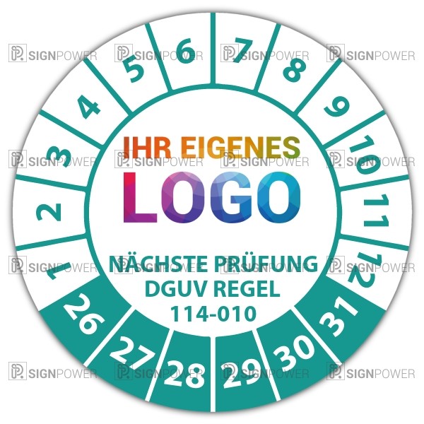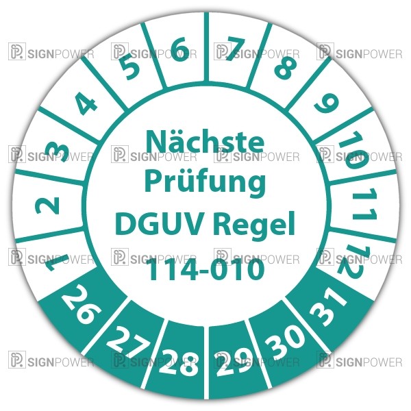 • Prüfplakette "Nächste Prüfung DGUV Regel 114-010" Prüfplakette "Nächste Prüfung DGUV Regel 114-010" logo